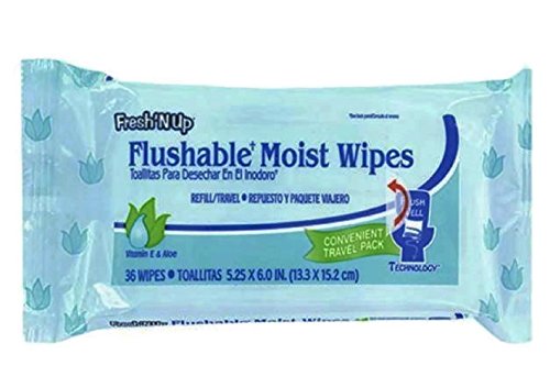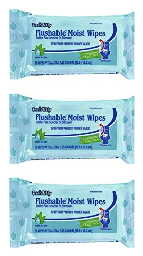 Fresh' N Up Flushable Moist Wipes with Vitamin E & Aloe-Total 108 Wipes-3 Packages