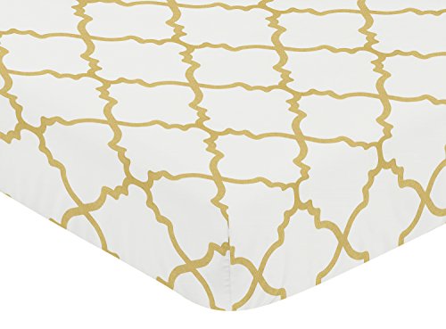 Fitted Crib Sheet for Ava Baby and Toddler Bedding - Gold and White Trellis Print