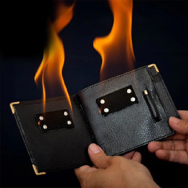 Open the wallet with fire instantly on Close the wallet to extinguish the fire.