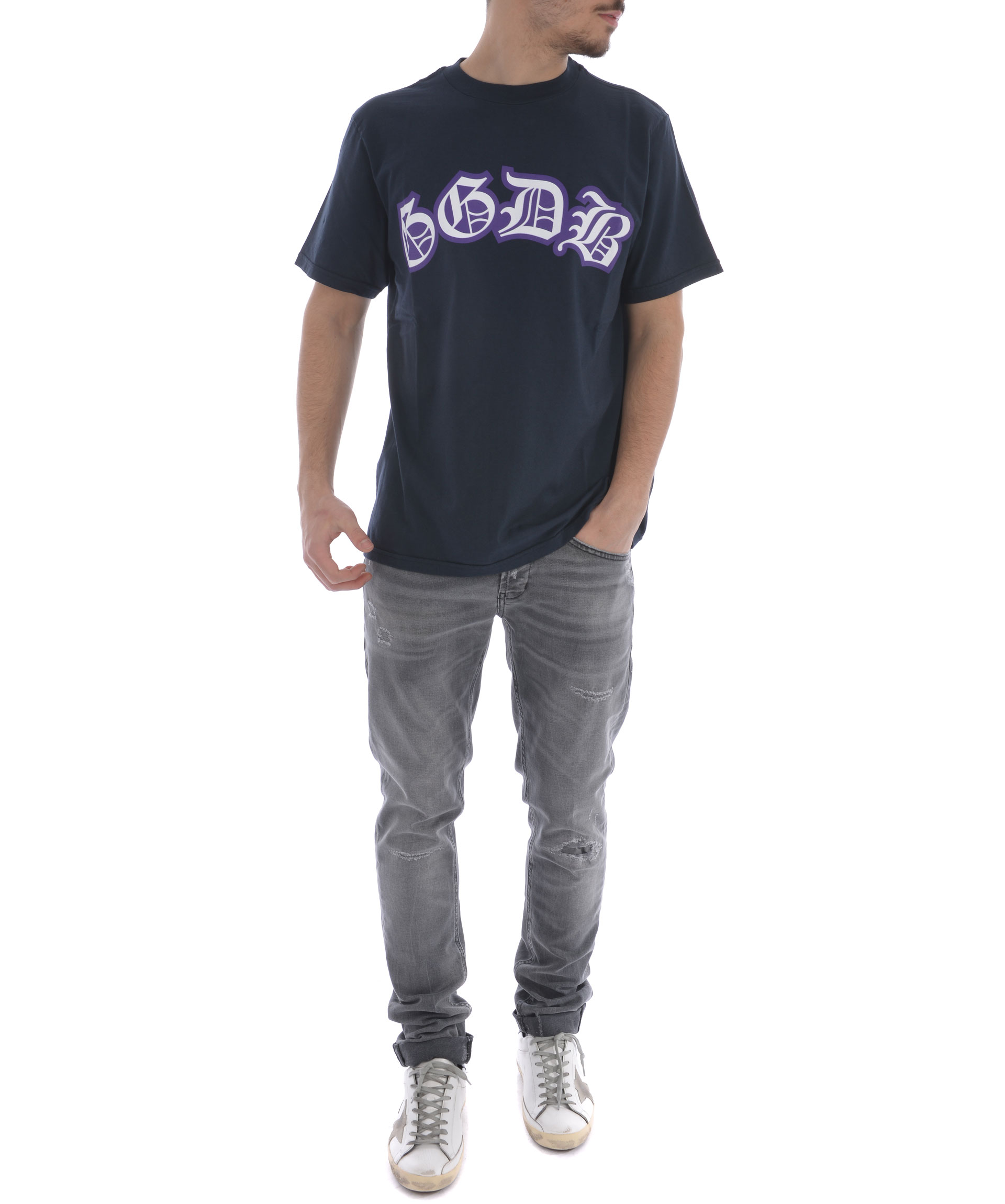 Golden T-shirt from Golden Goose: Dark Blue Golden T-shirt with round neck, short sleeves and straight hem.