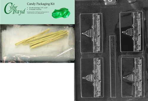Cybrtrayd "Washington D.C" Business Card Chocolate Candy Mold with Packaging Bundle of 25 Cello Bags, 25 Gold Twist Ties and Chocolate Molding Instructions