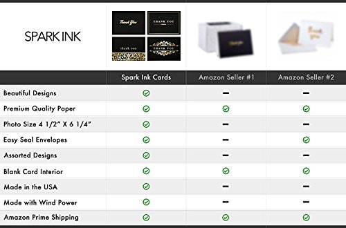 Spark Ink's simple and stunning gold thank you greeting cards were designed to wow your friends and family. Packaged for convenience, these bulk thank you cards give you the quantity you need for after a large event or just enough for multiple yearly gatherings. We crafted our product to eliminate hassles consumers were having with other products. Our thank you cards are sized to fit your 4x6 photos with envelopes specifically selected to seal with ease.