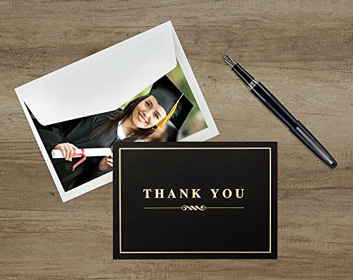 Graduation After many years of study those you love came to gather and celebrate. Say thank you with gold and black style and start the next phase of your life surrounded by those who continue to support you. Business Handing out bonuses to the team? Or a list of top clients that deserve to be personally touched. Do it right with a personal note of thanks. A handwritten thank you card can go a long way. Send one to a customer or colleague. Made in the USA at a 100% certified wind powered printing company in Maine. 0