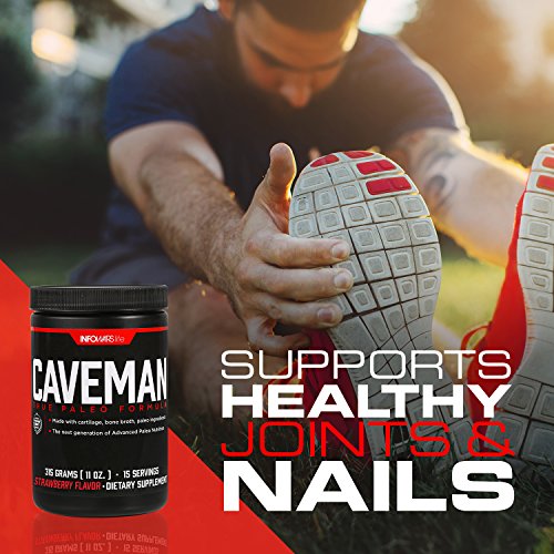 -. Binding : Health and Beauty -. Brand : Infowars Life -. Feature : A breakthrough in paleo protein supplementation that delivers the benefits of homemade bone broth in a convenient, easy-to-mix, great-tasting chocolate powder. / Helps support healthy muscles / Supports healthy digestion / Encourages health on the cellular level / Helps support healthy tendons and ligaments -. IsAdultProduct : 0 -. Label : Infowars Life -. Manufacturer : Infowars Life -. ProductGroup : Health and Beauty -. ProductTypeName : HEALTH_PERSONAL_CARE -. Publisher : Infowars Life -. Studio : Infowars Life -. Title : Caveman True Paleo Formula (15 Servings) – Bone Broth Protein Powder with Collagen, Turmeric Root, Chaga Mushroom, Bee Pollen & other Ancient Supernutrients