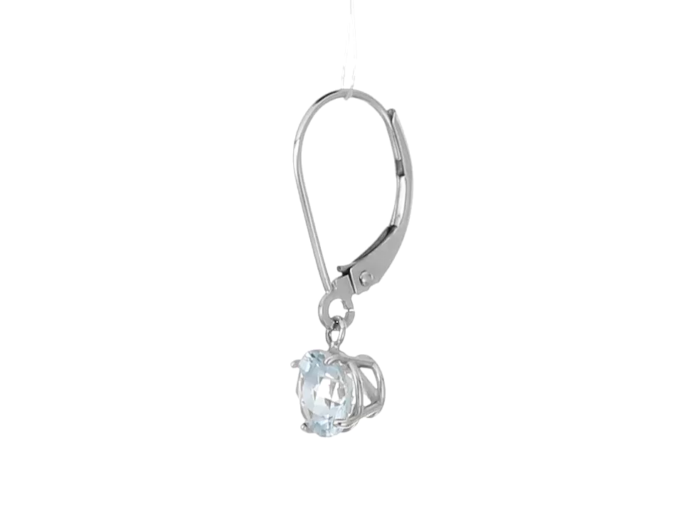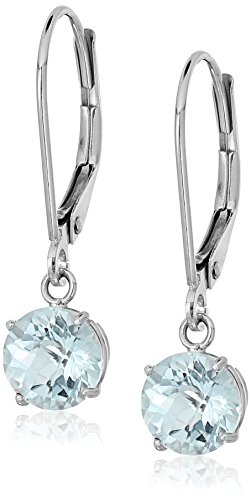 Sterling Silver Round Checkerboard Cut Aquamarine Lever back Earrings (6mm)