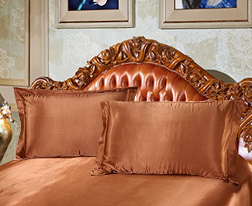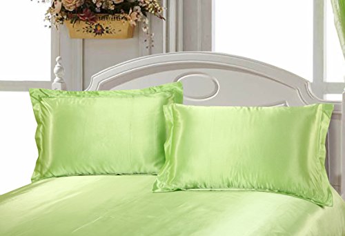 -. Feature : Made of luxury soft and smooth polyester satin / Package includes 1 fitted sheet and 2 pillowcases / Twin Size: Fitted sheet 47" x 79" / 120 x 200cm; 9 inch / 23cm pocket for mattress, Pillowcases 20" x 30" / 48 x 74cm / Elastic at 4 corners / Machine wash and tumble dry for easy care