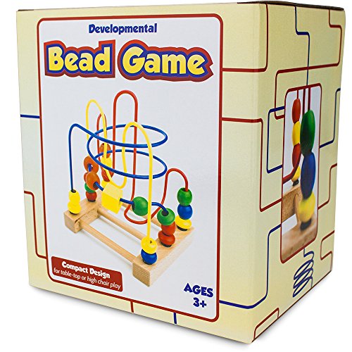 Studio : Brybelly Publisher : Brybelly Binding : Toy Product Description Race all around the bead maze! As little fingers guide the multi-colored, solid wood beads along the three wire mazes' twisty-tight corners, they'll be building motor skills, hand-eye coordination, even shape and color recognition. And with a compact frame, this is learning that will travel. Play Anywhere! Measuring just 6.25" by 5.25", this bead maze is extra compact. Of course, it plays great on the floor, but it fits in play pens, in pop-up play tents, in cribs, and thanks to the no-slip foam feet, is perfect for coffee tables, desks, even on highchair trays! Best yet, the space-saving design lets you slip this bead maze right into a diaper bag or backpack. Take this classic toy anywhere, anytime, with ease. Three Fun Paths Small size? Big fun. This maze features 3 complex, fully-featured metal tracks: the blue corkscrew, the yellow roller coaster, and the red hairpin turns. Your little one will love navigating the twists, turns, small hills and big drops with all the different shapes and sizes of beads! For ages 1 and up. 0