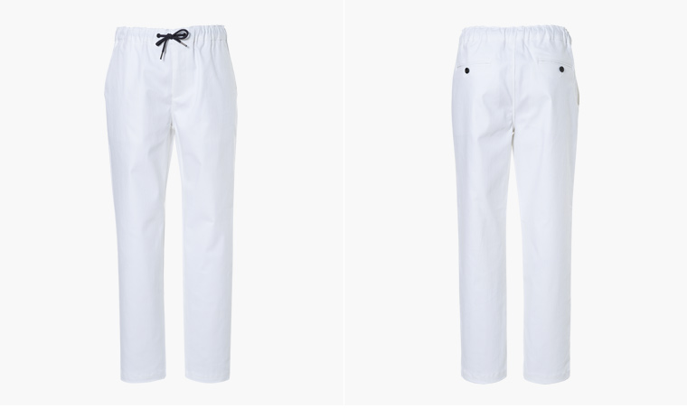 화이트 컬러의 데님코튼으로 제작된 밴딩팬츠입니다. S/S시즌에 잘 어울리는 화이트데님으로 캐주얼하게 코디하기 좋습니다. 스판사가 함유된 원단을 사용해 신축성이 좋아 편안한 착용감을 느낄 수 있습니다. 한번 입으면 무릎이 늘어나는 저가형 원단이 아니라 라인을 잘 유지하며 착용이 가능합니다. 데일리웨어로 루즈한 티셔츠나 스?셔츠 등과 함께 가볍게 착용하기 좋은 팬츠입니다.