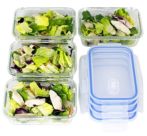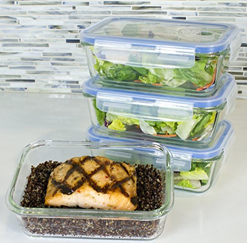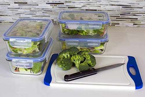 8 Piece Set Includes: 4 borosilicate glass food containers and 4 vented snap locking lids, 4-28 Oz (3.5 Cups), 7.2" x 5" x 2.5" fits normal sized 6 pack bags, easy for meal prepping, saves space, and travels easily Misc Home Glass Food Storage containers use snap lock lids that with silicone seals to ensure your meal prep food will last much longer than normal plastic food storage containers or Tupperware. These lids are easy to use and will stop leaking and spills, also the venting switch allows for easy and safe venting of hot foods. Our glass meal prep containers are made from borosilicate glass, much stronger than the tempered glass meal prep containers other brands sell. Pyrex containers are made from borosilicate glass because it is stronger and can hold up to temperature changes much better than cheaper glass food storage containers. FDA Certified food grade safe and 100% Bpa Free meal prep containers. These glass portion control containers are easy to use and easy to take care of, microwave safe, freezer safe, dishwasher safe, and oven safe for over 500 degrees Fahrenheit.Feature