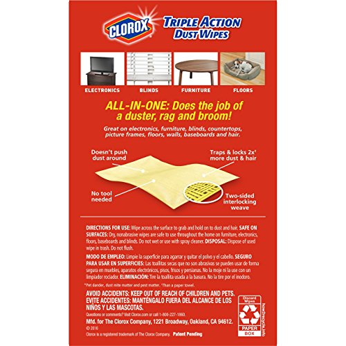 - TWO-SIDED DUST WIPE: Easily dust an entire room and all household surfaces with just one Clorox Triple Action Dust Wipe that's dry for easy handling