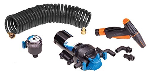 Jabsco 82906-0092 Automatic Washdown Pump, Hot Shot, 6.0 Gallons Per Minute, 70 PSI, 12 Volt, 25 Foot Coiled Hose