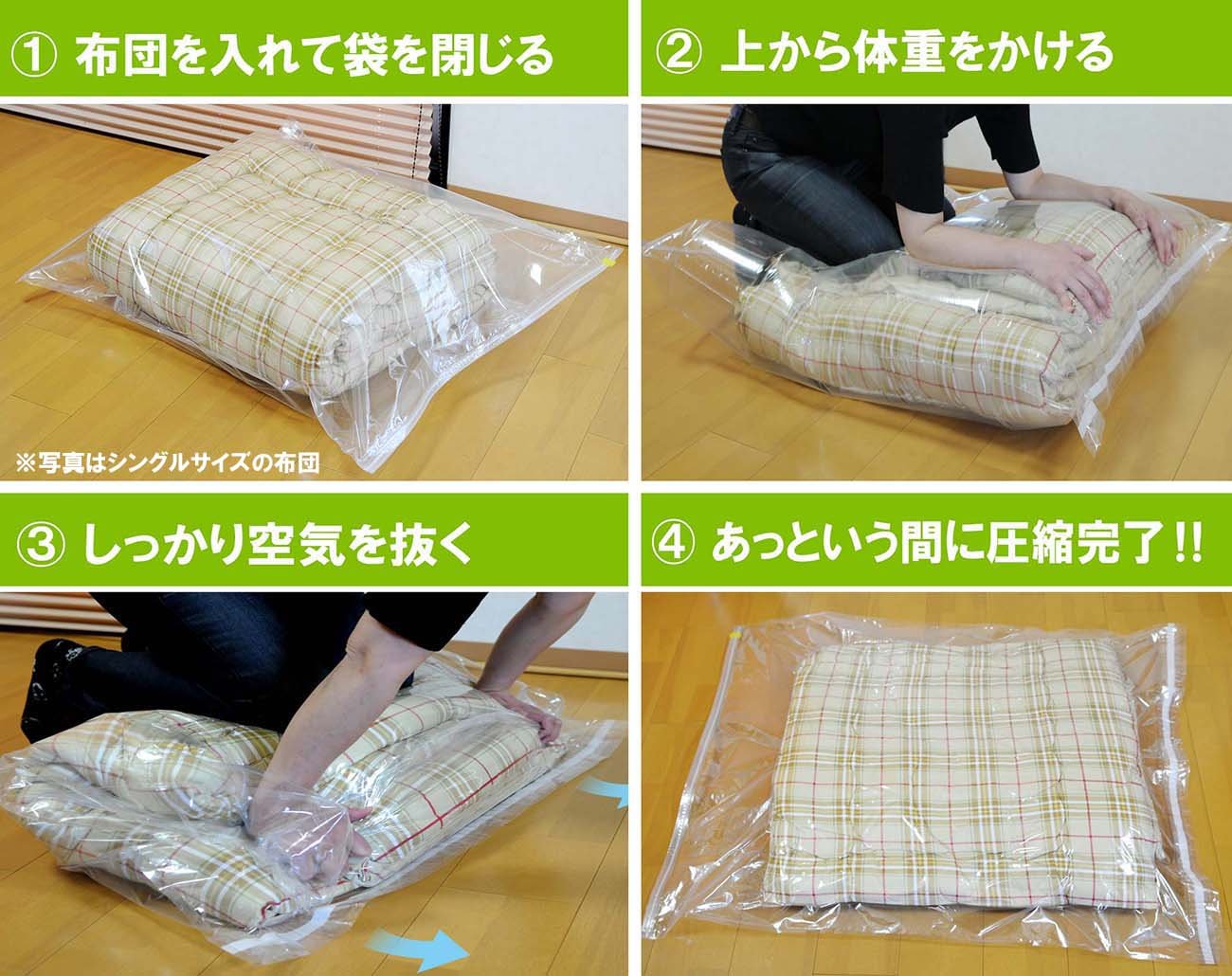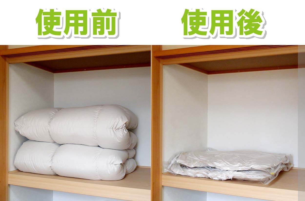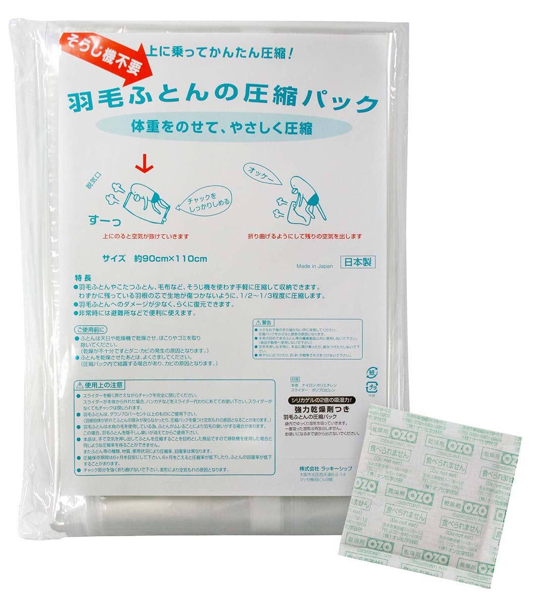 Both compression bags and desiccants are made in Japan.