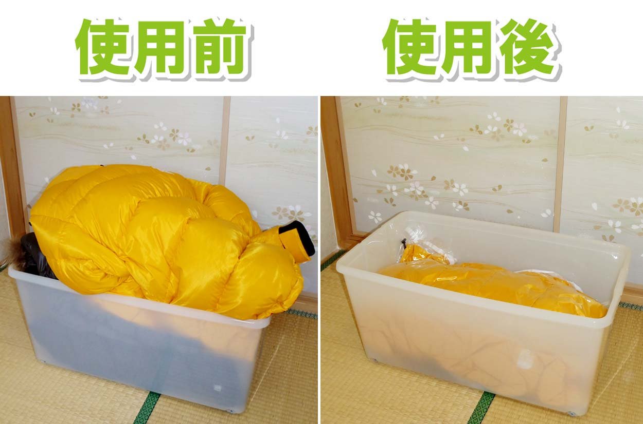 The down comforter can be recovered with little damage by compressing it about 1/2 ~ 1/3 so as not to be scratched by the wick core.