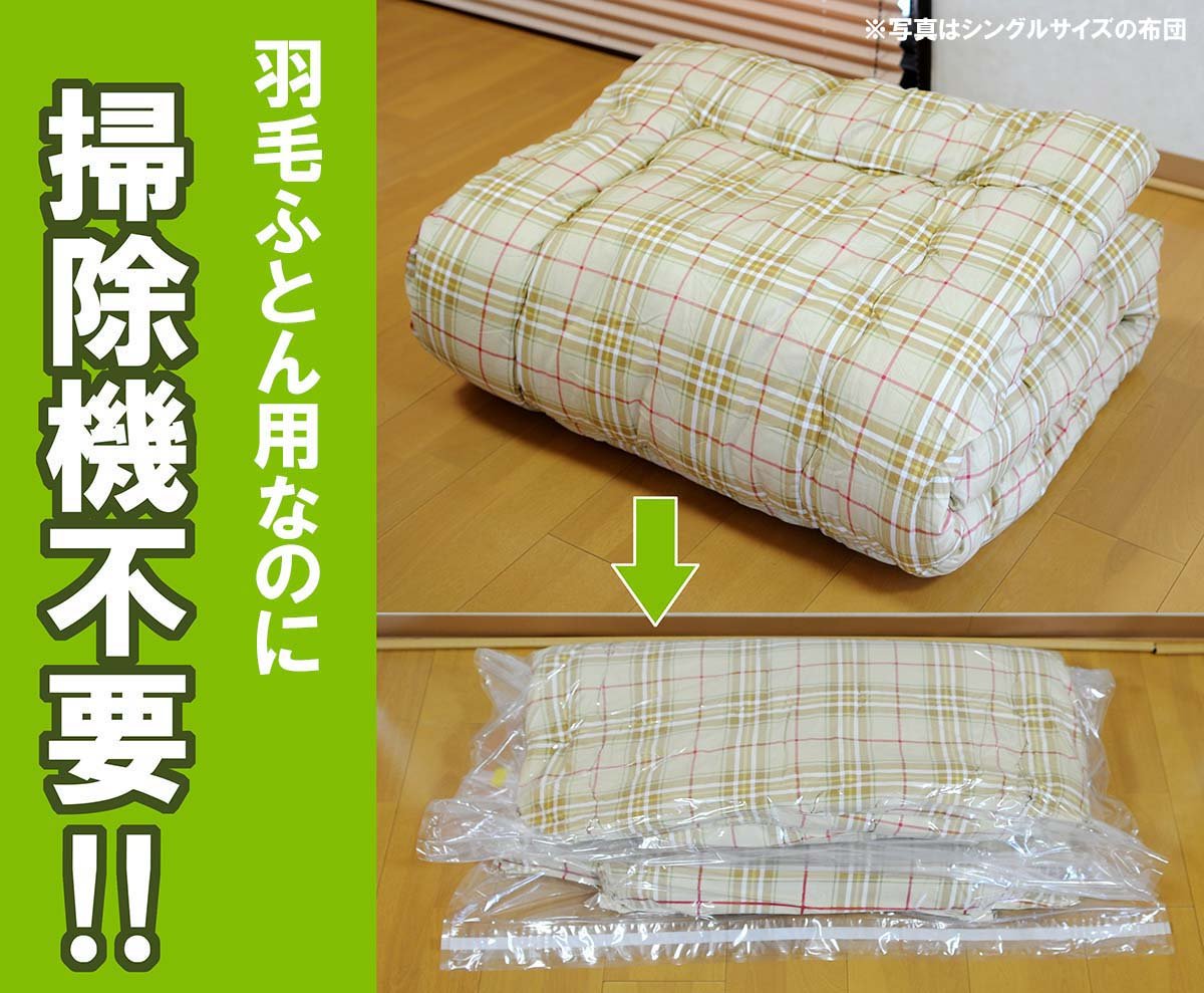 No vacuum cleaner! Compression bag of down comforters that can be easily gently compressed.