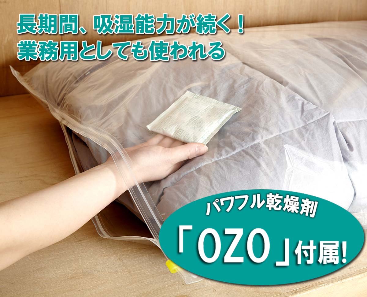 The attached desiccant "OZO" is not a matter of first absorbing moisture, it is a "delayed type" in which hygroscopic power continues beyond the season.