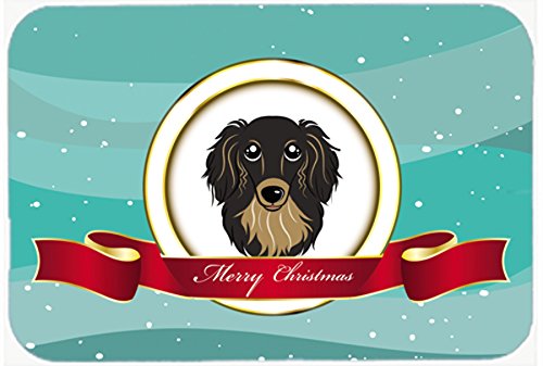 Caroline's Treasures BB1523LCB Longhair Black and Tan Dachshund Merry Christmas Glass Cutting Board, Large, Multicolor
