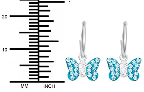 - Title : .925 Sterling Silver Hypoallergenic Aqua Crystal Butterfly Hoop Earrings for Girls (Nickel Free)