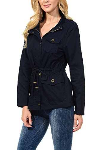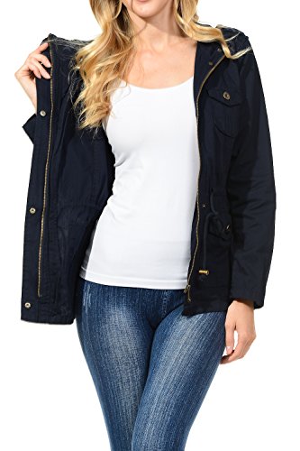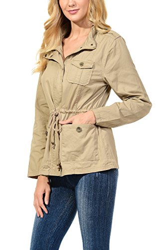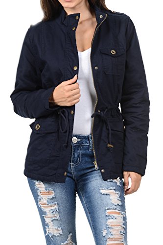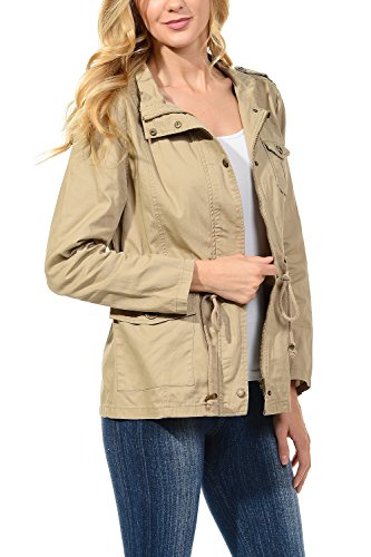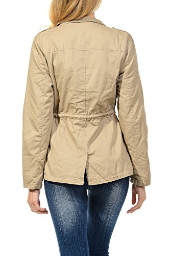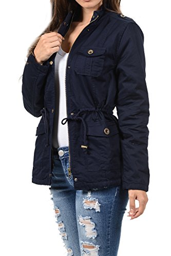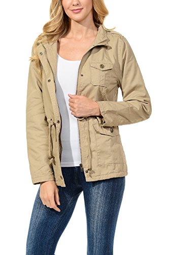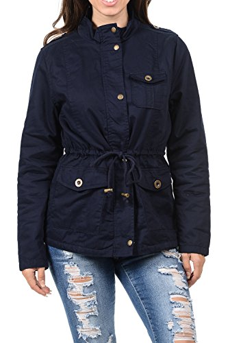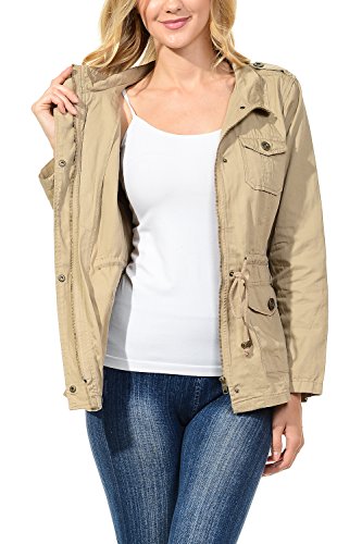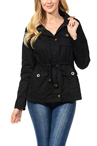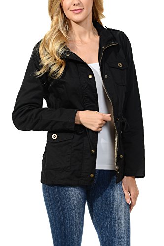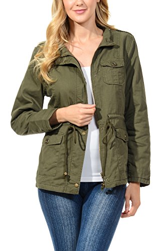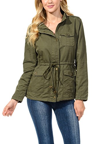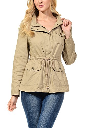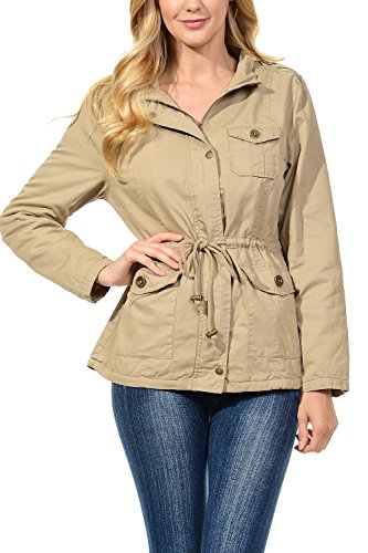 Binding : Apparel Product Description The Auline Collection Womens Military Safari Utility Fashion Anorak Jacket comes in either a sherpa faux fur lined option or no inner lining option. The faux fur lined option adds extra warmth while the no lining option is the better choice for layering or to wear in warmer weather. The jacket has a collar neck, zipper closure with accompanying buttons, 3 front utility pockets, an adjustable waist drawstring and a length that sits at the hips. Outer Fabric: 100% Cotton | Fur Lining: 100% Polyester. Available in colors Olive Green, Black, Khaki, Navy Blue. Sizes available are S, M, L, 1XL, 2XL, and 3XL. Please check the measurements in the picture gallery to ensure the best fit. 0