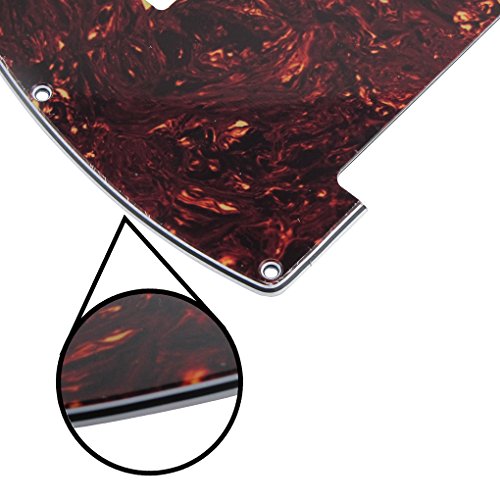 Product Description Feature:1. Telecaster style mini humbucker pickguard, normally fits to USA/Mexico Standard Telecaster guitar. (We have shown the dimensions for reference.)2. All materials are environmentally friendly, thermostability, no smell. Multi-layer plates are pressed under high temperature and pressures, to make them close integration between each layer, will not appear curly, deformation, or separation of different layers.3. Excellent product process ensure the edge of the smooth and structured.4. Two layers of protective films on the front of pickguards, anti-scratch to protect the guitar.Specification:a. Item: Tele style guitar mini humbucker pickguardMaterial: Pickguard made of 4Ply Real Tortoise Plate and PVC material.b. With standard 8 screw mounting hole pattern.c. Pickup hole is cut for a Seymour Duncan mini humbucker, hole size = 28.5mm x 68.5mm.d. The distance of the two pickup screws mounting holes = 75.2mme. Neckpocket cutout: 56mm; Bridge cutout: 87.7mmf. Color: Red Tortoise Colorg. With protective film on the surface, while using please split it off.Package Includes:1 x Guitar pickguard 0