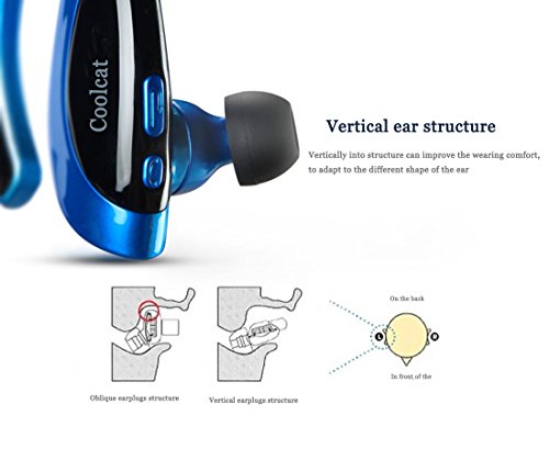 Bluetooth Headphones,Coolcat® Bluetooth Wireless Headset Earphones Noise Cancelling In-ear Earbuds With Mic for iPhone,iPad iPod,Samsung LG,and Other Bluetooth Device (Blue)