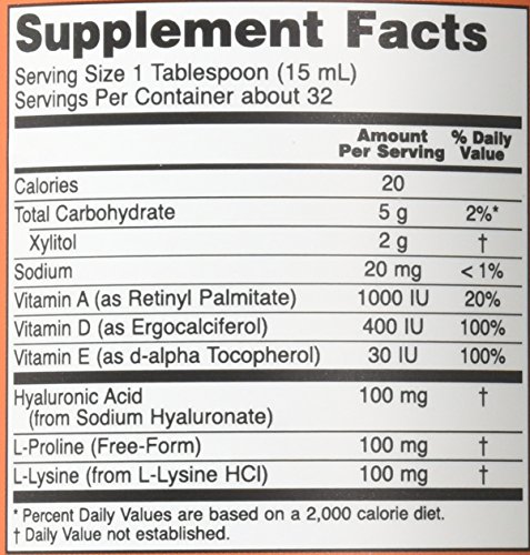 Flavor: Delicious Berry | Size: 16 oz Liquid Hyaluronic Acid Joint Support by Now Foods 16 oz Liquid Liquid Hyaluronic Acid Joint Support Hyaluronic Acid is a lubricant present in every tissue of the body with the highest concentrations occurring in connective tissues such as skin and cartilage. As a constituent of joint fluid Hyaluronic Acid also serves as a lubricant and plays a role in resisting compressive forces. Our formula combines this essential component with Vitamin D and other nutrients that are essential for the formation of collagen found in cartilage and connective tissue to support optimal joint health. Suggested Use (as a dietary supplement) Suggested Usage Shake well before using. As a dietary supplement take 1 tablespoon (15 mL) 1 to 2 times daily. Can be taken directly or mixed with water or juice. Consider taking these other NOW products Glucosamine Chondroitin and MSM. or as directed by your healthcare professional. Supplement Facts Serving Size 1 Tablespoon Servings Per Container 31 Amount Per ServinFeature