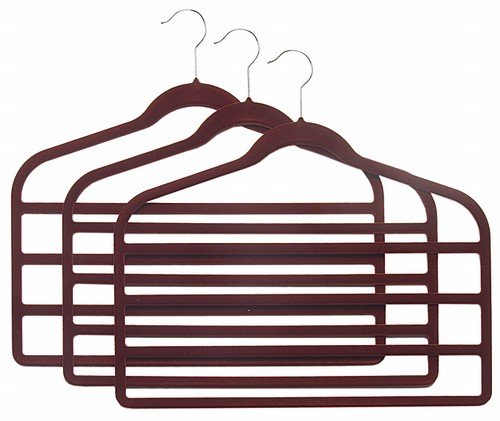 -. Feature : 18" Wide Ultra Slim Multi Pant Hanger / Velvety Non-Slip Surface Keeps Pant from Slipping / Saves Closet Space! / Burgundy Color w/ Chrome Hook / Sold in Packs of (3) Hangers