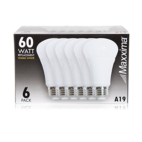 Maxxima LED A19 - 800 Lumens 60 Watt Equivalent Warm White (2700K) Light Bulb, 10 Watts (Pack of 6)