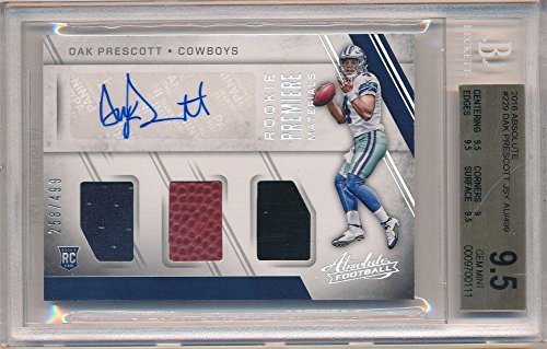 DAK PRESCOTT 2016 ABSOLUTE ROOKIE AUTO TRIPLE JERSEY BALL SP /499 BGS 9.5 GEM 10