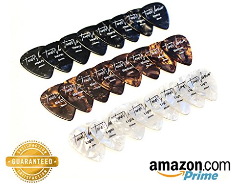 Guitar Picks - 24 Assorted Value Pack by ToneWarrior - Awesome Unique Custom Designs in Light/Thin, Medium & Heavy/Thick Quality Celluloid- Best for Acoustic, Electric or Bass Guitar.