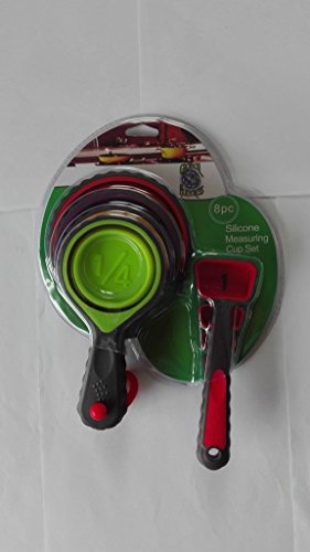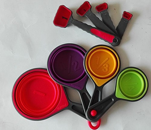 Global Huntress Collapsible Silicone Measuring Cups and Red Measuring Spoons Set - 8 Pieces
