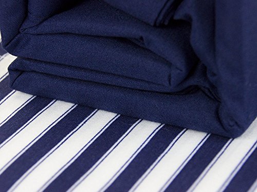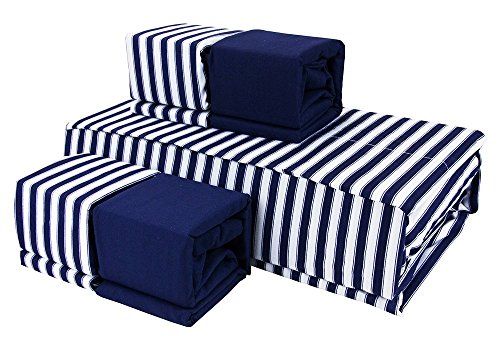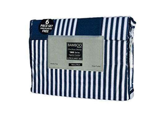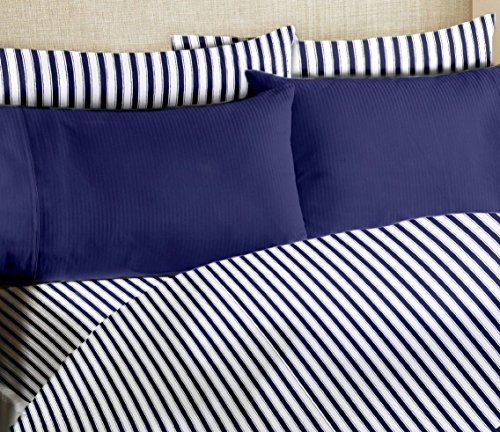 Bamboo Essence "PIN STRIPE" 1800 Series- Extra Soft-Wrinkle-Free, Deep Pocket ,100% Microfiber 6-Piece Sheet Set (Navy Blue/White, Queen)