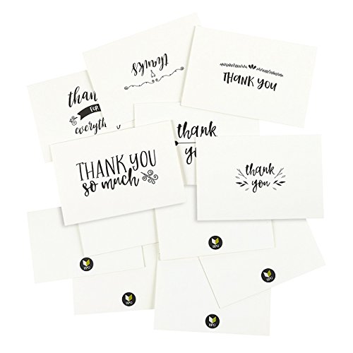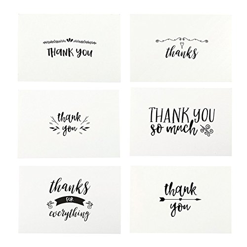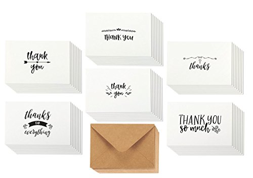 48 Assorted Pack Thank You Note Cards Bulk Box Set - Blank on the Inside - 6 Vintage Handwritten Thank You Designs - Includes 48 Greeting Cards and Brown Kraft Paper Envelopes - 4 x 6 Inches