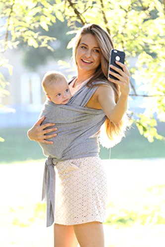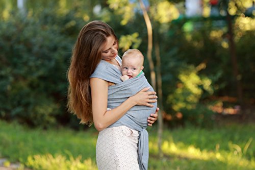 BABY SLING CARRIER - NATURAL COTTON NURSING MOBY COVER FOR NEWBORNS | BREASTFEEDING SLING BABY SOFT & SAFE HOLDER [GRAY] NICE BABY SHOWER GIFT BY BUBBLEPLEASURE