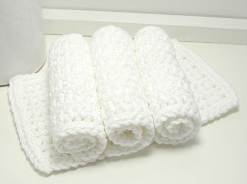 -. Title : Handmade White 4.5 Inch x 7 Inch Rectangular Crochet Cotton Dishcloths (Set of 4)