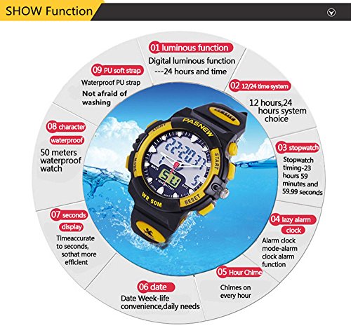 Independent dual display: digital and analog,Dual time (two movt),Back light function,Stop watch function,Alarm clock function,12H/24H time format,Long battery life,Stopwatch (1/100 seconds)