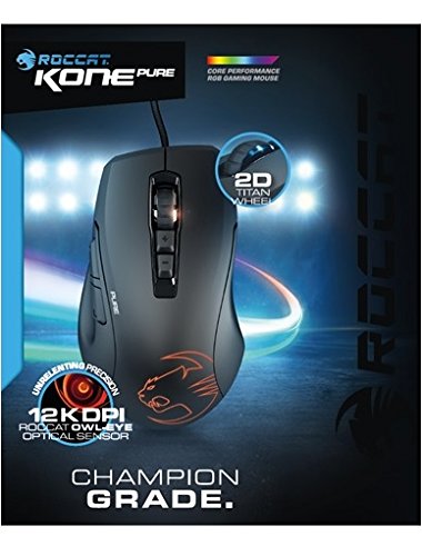 The Kone Pure Owl-Eye was designed and built for gamers who wanted the fan-favorite design of the Kone EMP in a slimmer package. At 88 grams and 91% the size of its bigger brother, the competitive-weight Kone Pure packs one hell of a punch. Featuring a Pro-Grip surface for maximum mouse control, its champion-grade ergonomics make it a top choice for gamers who take their peripherals seriously and like to game hard. Despite its reduced size, it boasts industry-leading optics with its ROCCAT Owl-Eye optical sensor plus a powerful MCU. The Kone Pure is champion grade.Feature