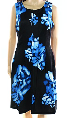 Product DescriptionSleeveless printed fit and flare dress with seaming detail at waist0