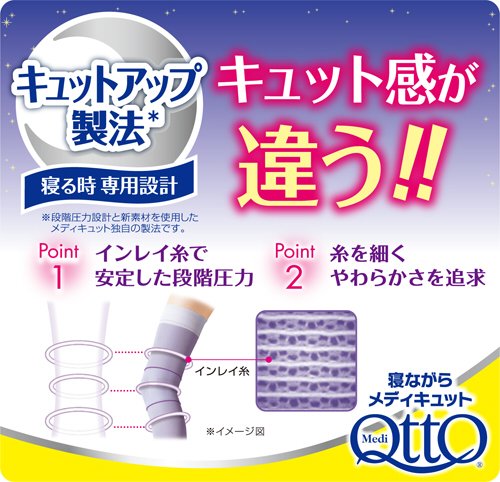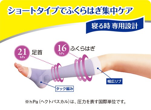 原産国 : 日本内容量 : 1足商品サイズ (幅X奥行X高さ) : パッケージサイズ:100mm×25mm×180mmアパレルサイズ(対応サイズ) : Mサイズ:ふくらはぎ30~38cm,足首19~23cm,足22~24cm材質 : ナイロン、ポリウレタン、キュプラ