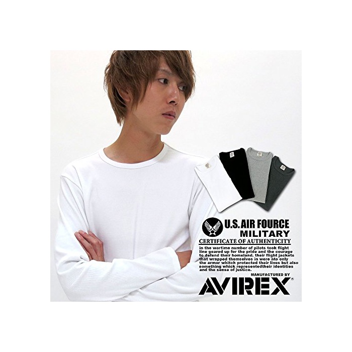 (아비렉스) AVIREX T셔츠 맨즈 브랜드 긴 소매 크루 넥 무지 리브 추 4color M charcoal