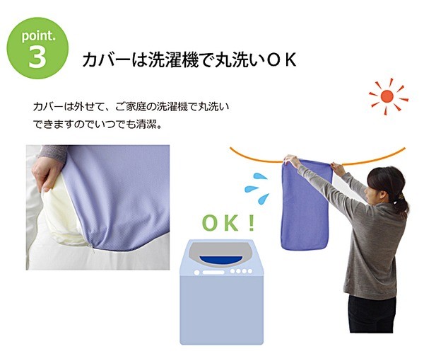 【洗濯表示】カバー=液温は30℃以下の水温で洗濯機の弱水流もしくは弱い手洗いができる。(洗濯ネット使用) 本体=洗濯できません。
