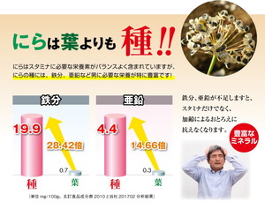 ニラ種は、葉よりも鉄分約28倍、亜鉛15倍とアミノ酸・ミネラルも豊富!