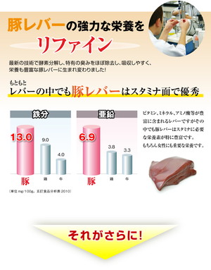 国産豚レバーを酵素分解し粉末化、レバーにはレバーの力(チカラ)!