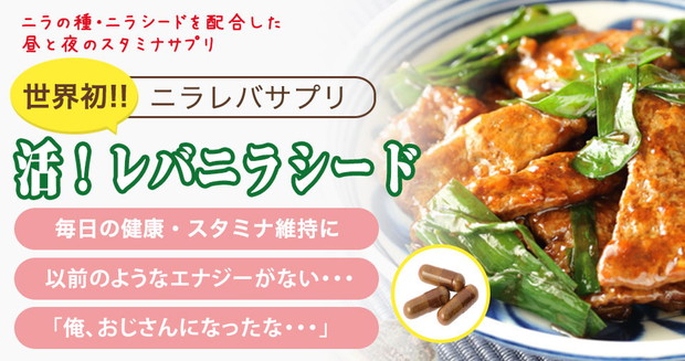 スタミナ元気食の定番レバニラを飲みやすいカプセルに!ニラの種・ニラシードを配合した昼と夜のスタミナサプリ!