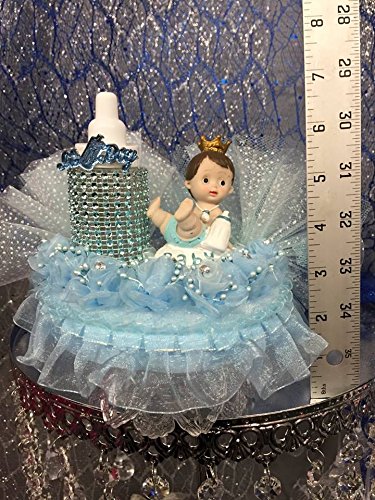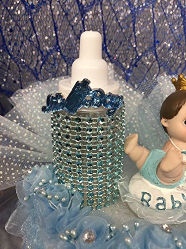 - Feature : Welcome to ONLINEPARTYCENTER!!! Your online source for everything party. The party starts here! / Baby Shower Prince Boy with Bottle Centerpiece Cake Topper Decoration Favor / Product Description: Make way for this Prince Baby Boy! Create the perfect ambiance for this little guy. Use this handsome decoration on your Baby Shower cake, or decorate your special tables. A prince baby boy next to a decorated baby bottle with blue simulated rhinestones with the word baby shower on top, the background is highlighted with white polka dotted tulle, he is resting on a bed of light blue organza imported flowers, the base is trimmed with white and blue lace. / Include: one Measurements: approx. 6" H / Please Note: Item may become loose during transit. Simply reapply glue to the loose areas. Thank you.