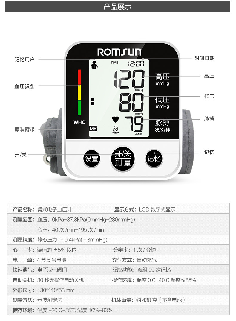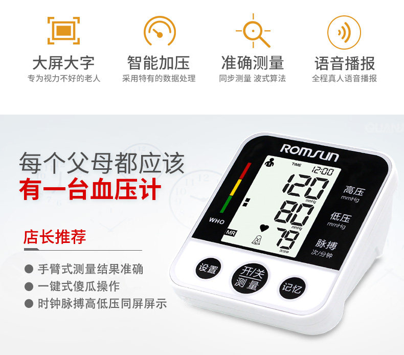 卓辰家用测电子家用压全自动高精准老人上臂式量血压计测量表仪器