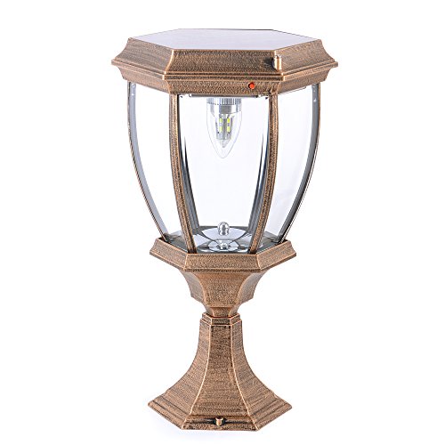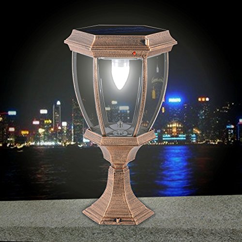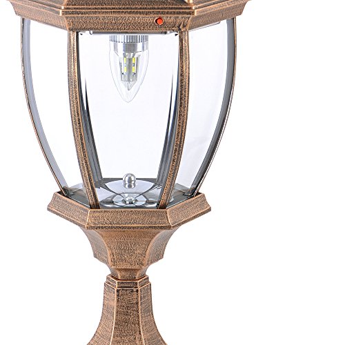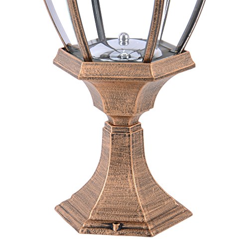 Large elegant outdoor lamp kits with gold finish. Measures 9 inches in diameter by 16 inches in height.