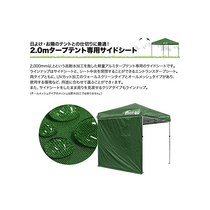원본상품명: FIELDOOR タプテント 2.0x2.0m 用サイドシト(幕) エントランスタイプ スチル製アルミ製共通(G03モデル)