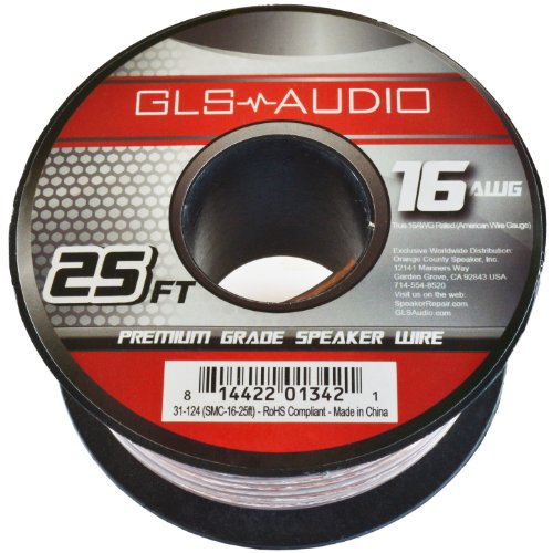 -. Title : GLS Audio Premium 16 Gauge 25 Feet Speaker Wire - True 16AWG Speaker Cable 25ft Clear Jacket - High Quality 25' Spool Roll 16G 16/2 Bulk