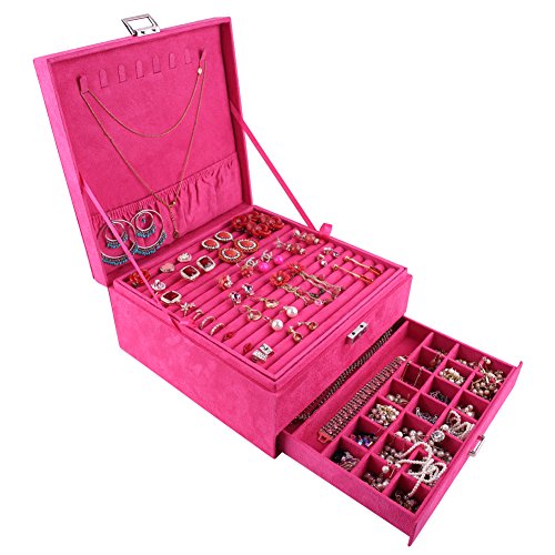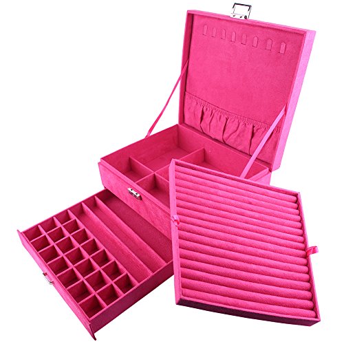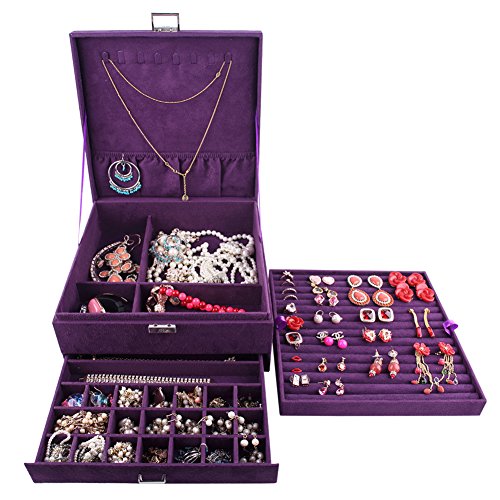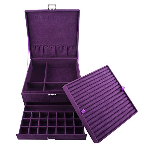 -. Title : GUANYA Suede Velvet Three Layers Jewelry Box Organizer For Watch Bracelet Ring Necklace