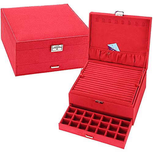 -. Feature : Product brief: mirror & large ring tray & drawer & with key lock ( Jewelry not include ) / Earrings, rings, brackets, necklaces ,etc can be held / Keep all your beautiful jewelry organized and elegantly displayed with this jewelry organizer / Size: 26*26*12.5 CM & Weight: 1.65 KG / CUSTOMER SERVICE - If for any reason you're not completely happy with your purchase- if it's damaged in shipping, or even if you change your mind - simply let us know an we will either replace it or refund your money your choice!